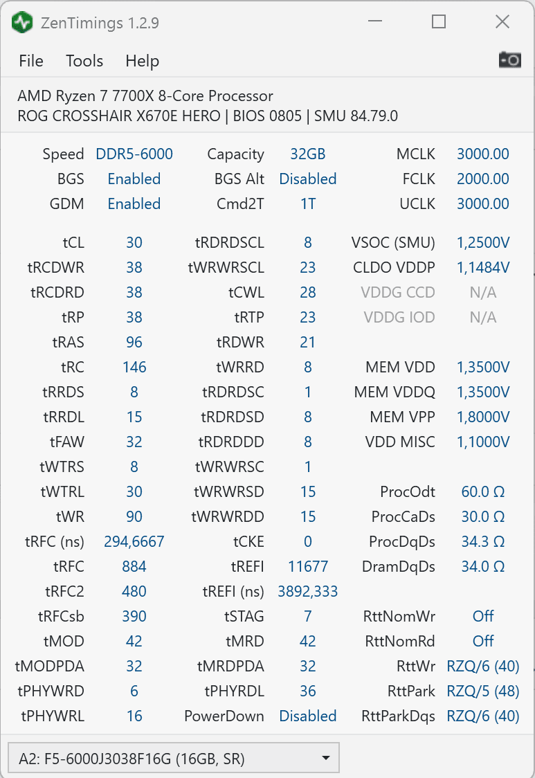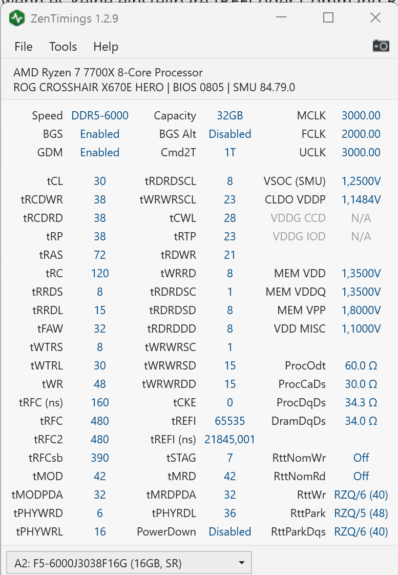 tRAS, tWR und tRC mal auf 72 zum start. Dann einfach runter arbeiten. tWR bekommt man meist locker auf 48. (Edit: das einzige was meist bei den drei Werten etwas Scheibe spielen kann ist tRC wenn es in Richtung 54 kommt.)Wie viel könnte ich runter gehen?