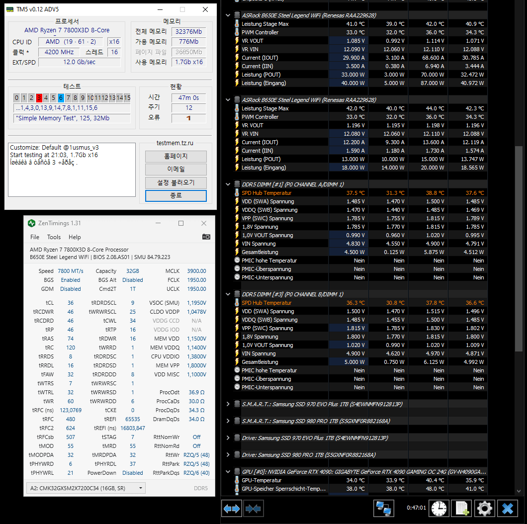 Danke für eure Rückmeldungen.für 6400 28-37 brauche ich 1.5v. Du liegst da meicht drunter laut HWInfo. Teste mal mit 1.5 bis 1.52v. Wenn das nicht hilft, müssen wir mal in das TM5 Error Sheet gucken (habs am smartphone gerade nicht griffbereit)