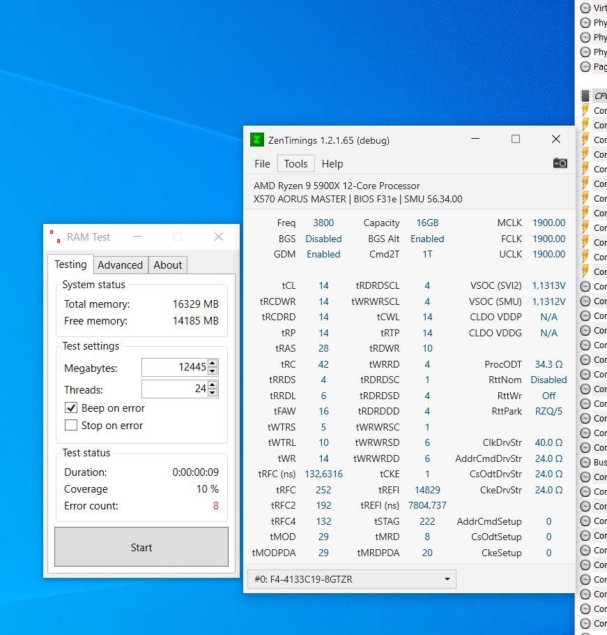 Ich hab jetzt seit Längerem mal wieder eins meiner 2x8GB Kits eingebaut, weil ich was bzgl. IF testen wollte, aber mit den Settings mit denen ich die 2x16GB vorher noch > 30 Minuten