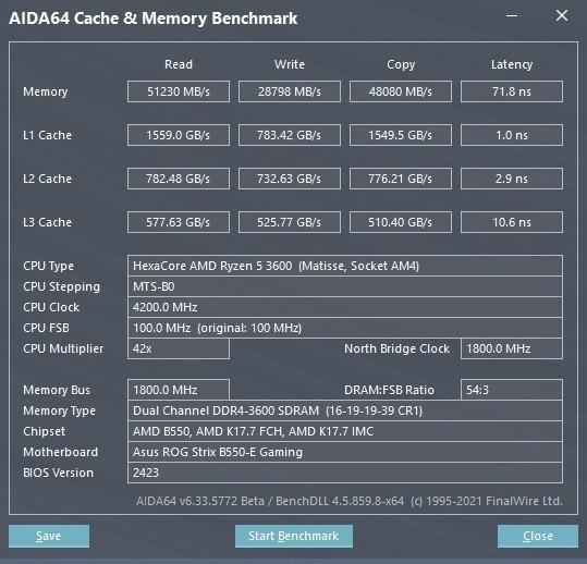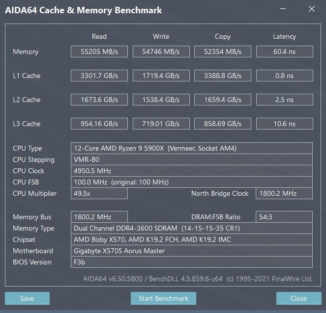 Das liegt nicht am RAM, sondern an Deiner CPU. Der Ryzen 7 5800X hat nur einen CCD. Das macht den Unterschied.Die viel wichtigere Frage zielt aber mehr auf den Aida-Benchmark ab, denn da scheint mein Ram sehr schlecht abzuschneiden. Gerade der Write ist ja nur halb so schnell, wie er bei allen anderen hier ist.