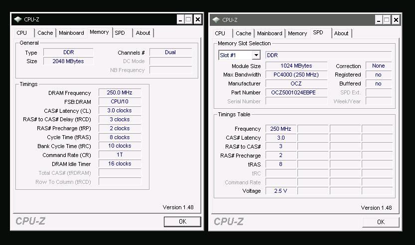2 * 1 GB OCZ XTC Gold Edition DDR500 [ Samsung UCCC ? ]
