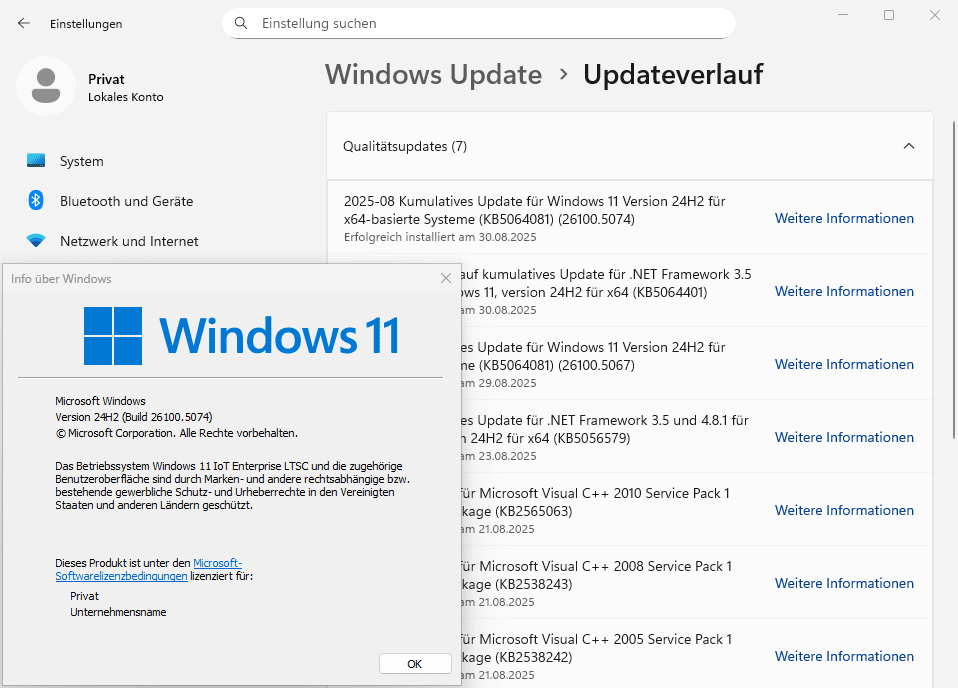 ps: Neuestes Build, auch für LTSC2024 IoT, ist nun 24H2 26100.5074.