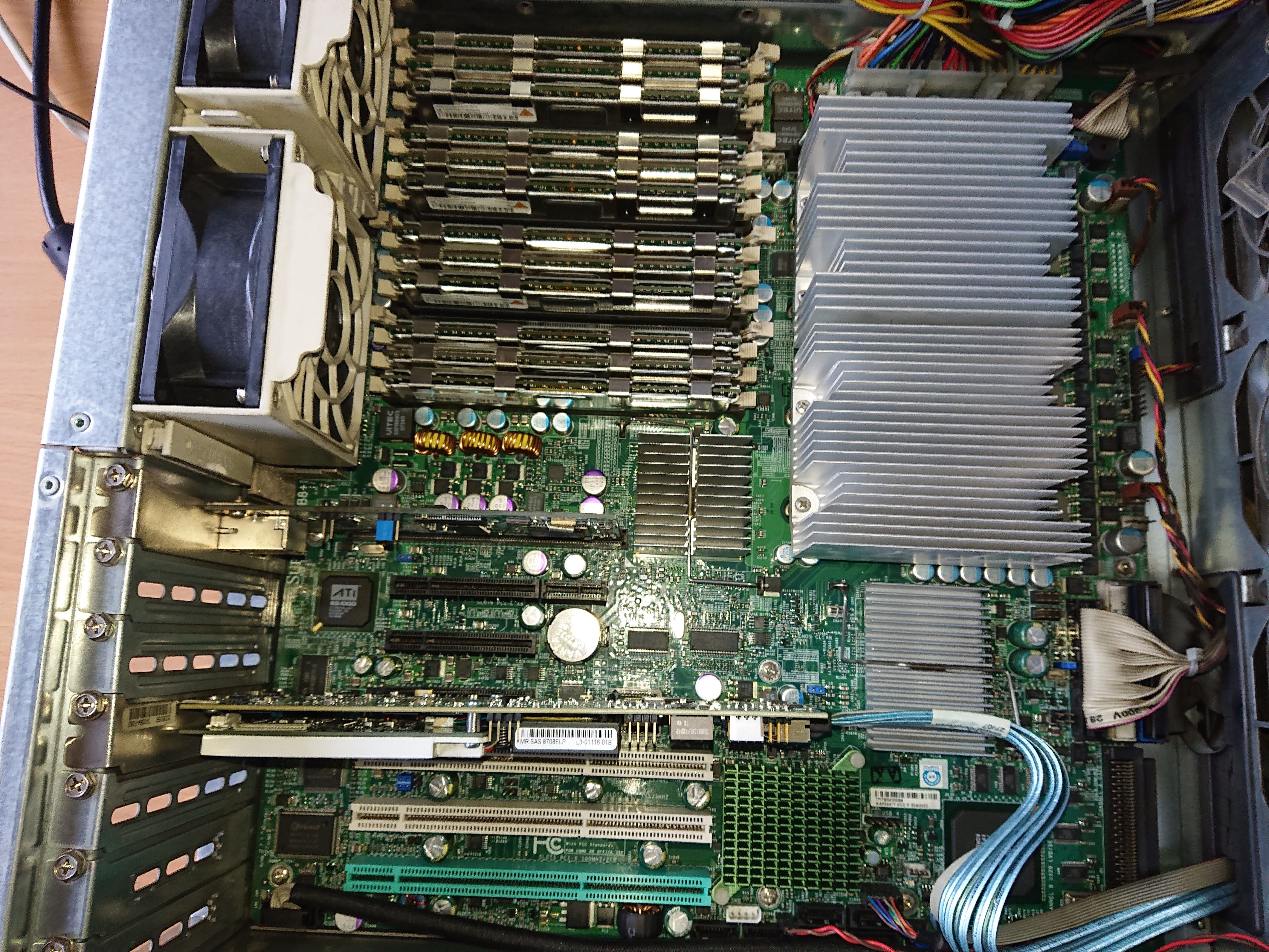 Es handelt sich um einen alten Supermicro Server mit einem X7DB8+ MB mit 2 Stück Xeon E5345 Prozessoren und zumindest 64GB RAM.