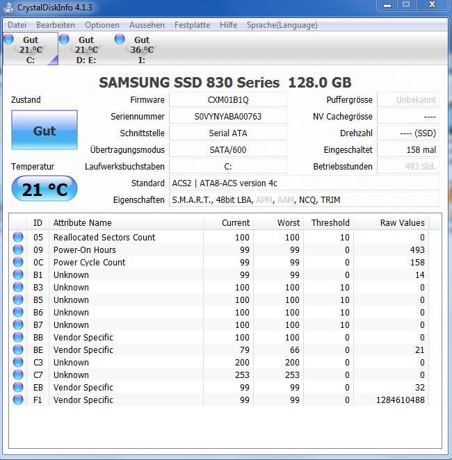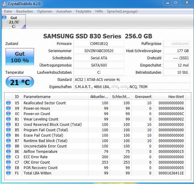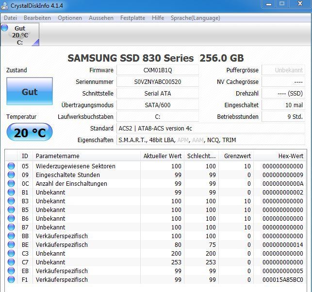 ich habe seit kurzem diese SSD (256GB). Nun habe ich mir mal die Smart-Werte angesehen, ist das so OK?