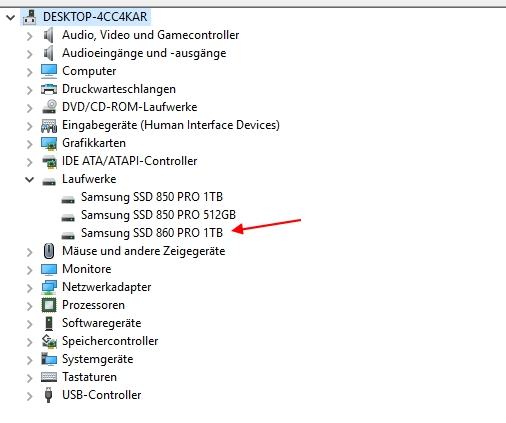 Windows 10 zeigt die neue 860 Pro als 850 Pro an, aber warum ?