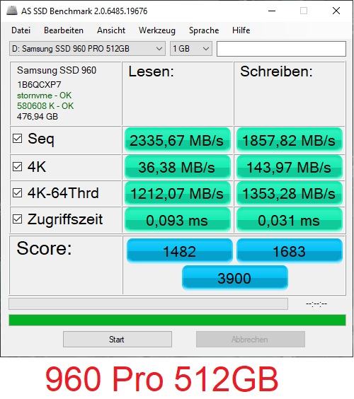 Meine 960 Pro bringt nicht mehr wirklich die Leistung die sie bringen soll (vor allem beim schreiben) und leider merkt man das an der ein oder anderen Stelle doch sehr unangenehm. Hier mal ein paar Beispiele :