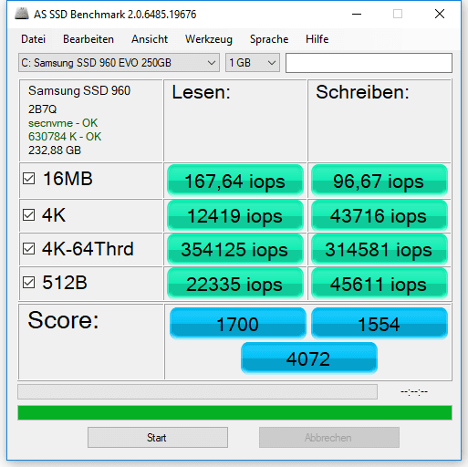 AS SSD Benchmark Samsung 960 Evo 250 GB