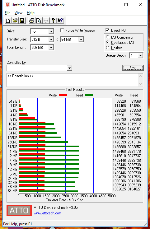 ATTO Disk Benchmark Samsung 960 Evo 250 GB