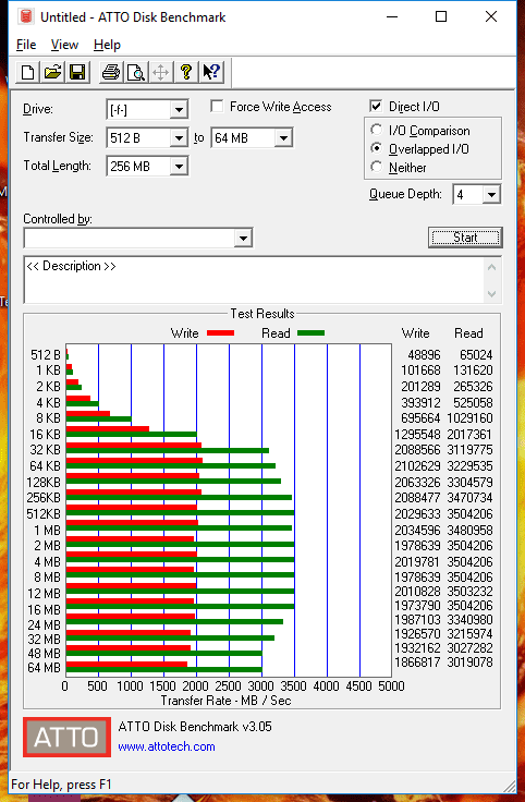 ATTO Disk Benchmark Samsung 960 Pro 512 GB
