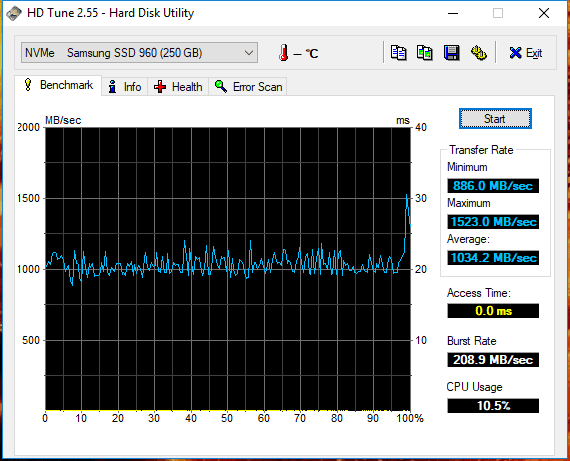 HD Tune Samsung 960 Evo 250 GB