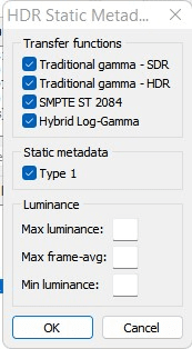 An der Stelle, wo ich die max luminance, max frame-avg und min luminance eingeben muss, bin ich mir unsicher, welche Werte ich hier eintragen muss.
