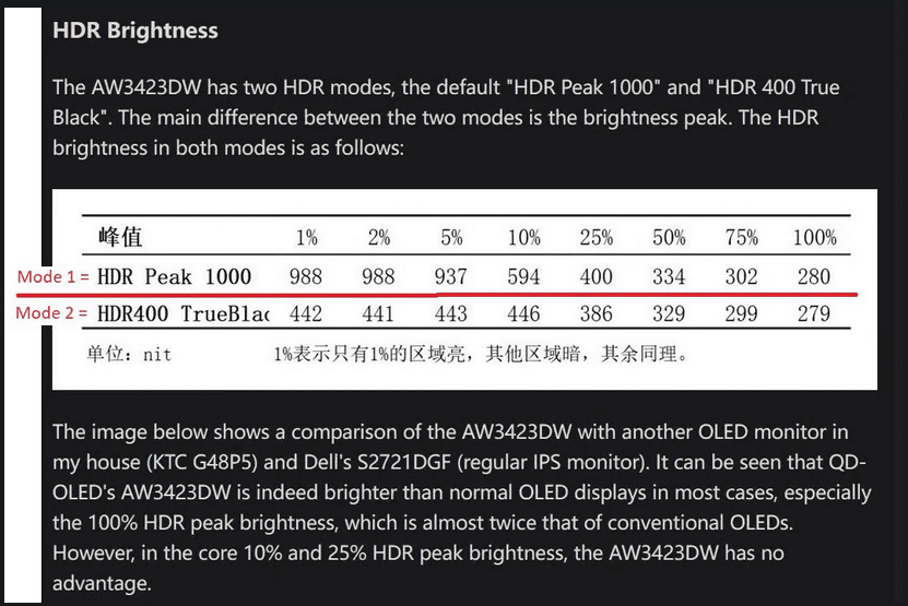 Anders ist es bei QD OLED welches auf RGB basiert ohne das W Sub Pixel ... das interessante dabei is das selbst ohne W Sub Pixel eine höhere Helligkeit zustanden kommt in so ziemlich allen Prozent Bereichen