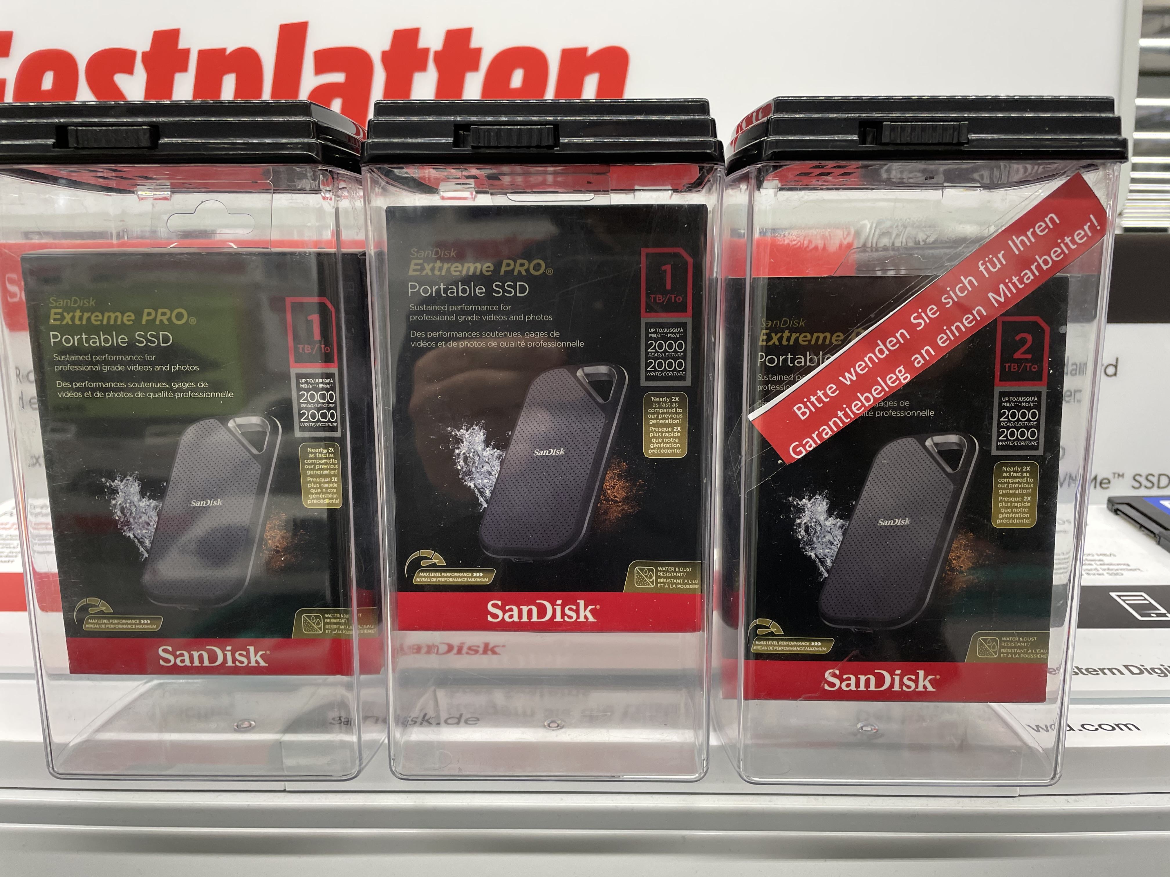 Habe gestern im lokalen Media Markt eine SanDisk Extreme Pro Portable 2TB mitgenommen.