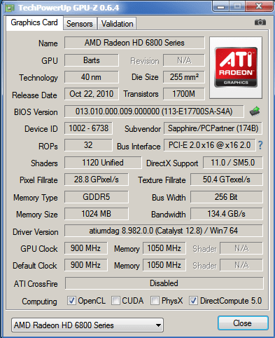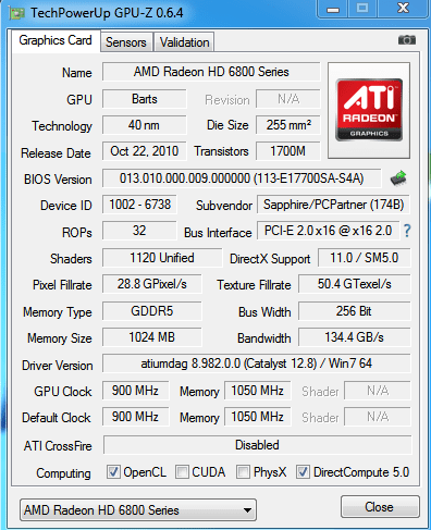 Sapphire VGA 1024MB HD6870 Aktiv PCIe 2.1 x 16 (Lite Retail)