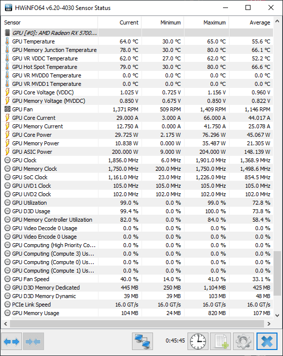 Eine aussagekräftigere Angabe mit hwinfo müsste erfolgen indem z.B. die aufgezeichneten Werte zurückgesetzt werden und die Sekunde danach sofort ins Spiel gewechselt wird und gespielt wird, ohne ins Pausenmenü zu gehen etc.