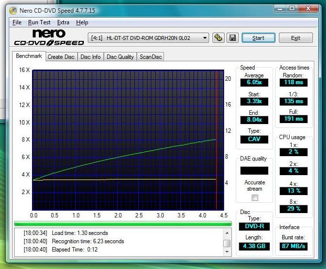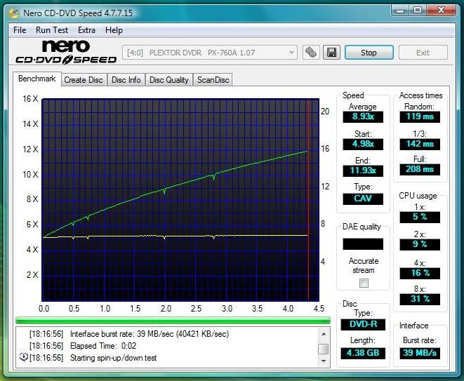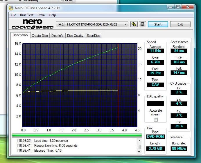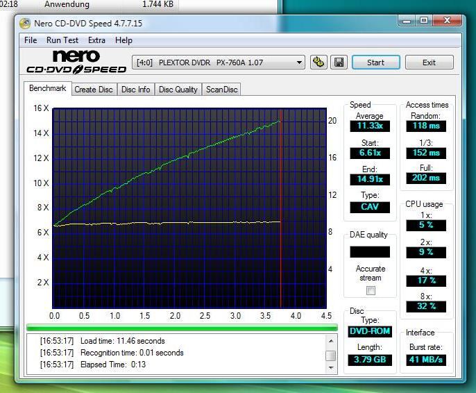 Da ich bei Nero und Ashampoo Burning Studio 8 festgestellt habe, dass die Durchschnittsgeschwindigkeit für das Brennen eines 4,7GB Rohlings nur 2x ist, obwohl es ein 16x Brenner ist habe ich mal meine beiden Laufwerke mit Nero CD-Speed getestet und bin auf die Ergebnisse im Anhang gekommen.