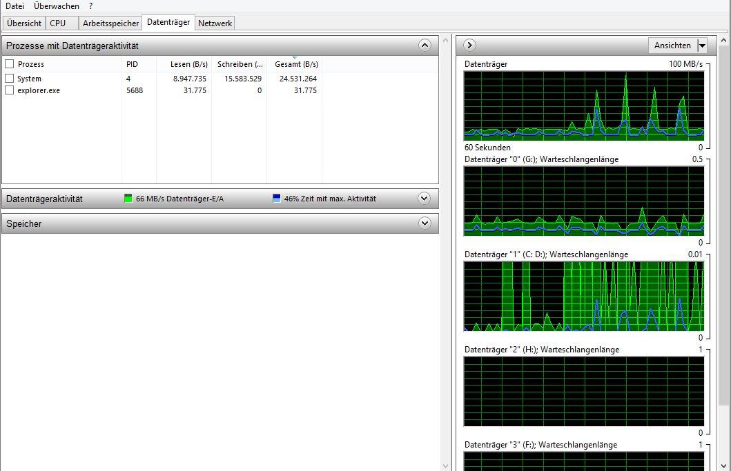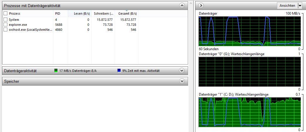 Da ja aber HDTune ordentliche Raten zeigt (außer vielleicht bei der SSD), ist da bestimmt etwas anderes, dass das Kopieren stört (Virenscanner ist nicht installiert).