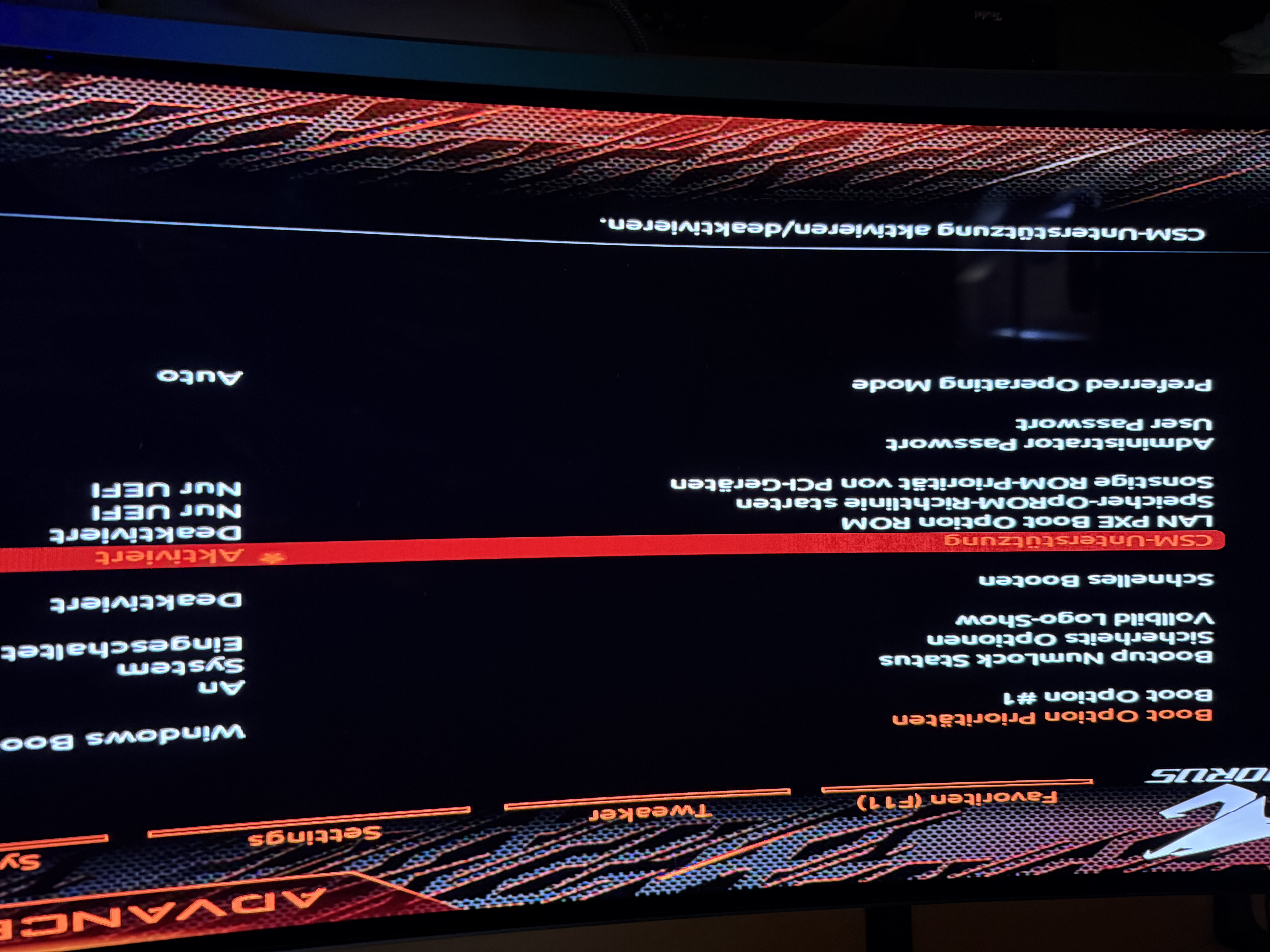 Jetzt frage Zweck Windows 11 Installation soll csm akteviert haben dann seh ich aber kein secrou boot erst wenn es aus ist hier bild mit csm hab auch ftpm an