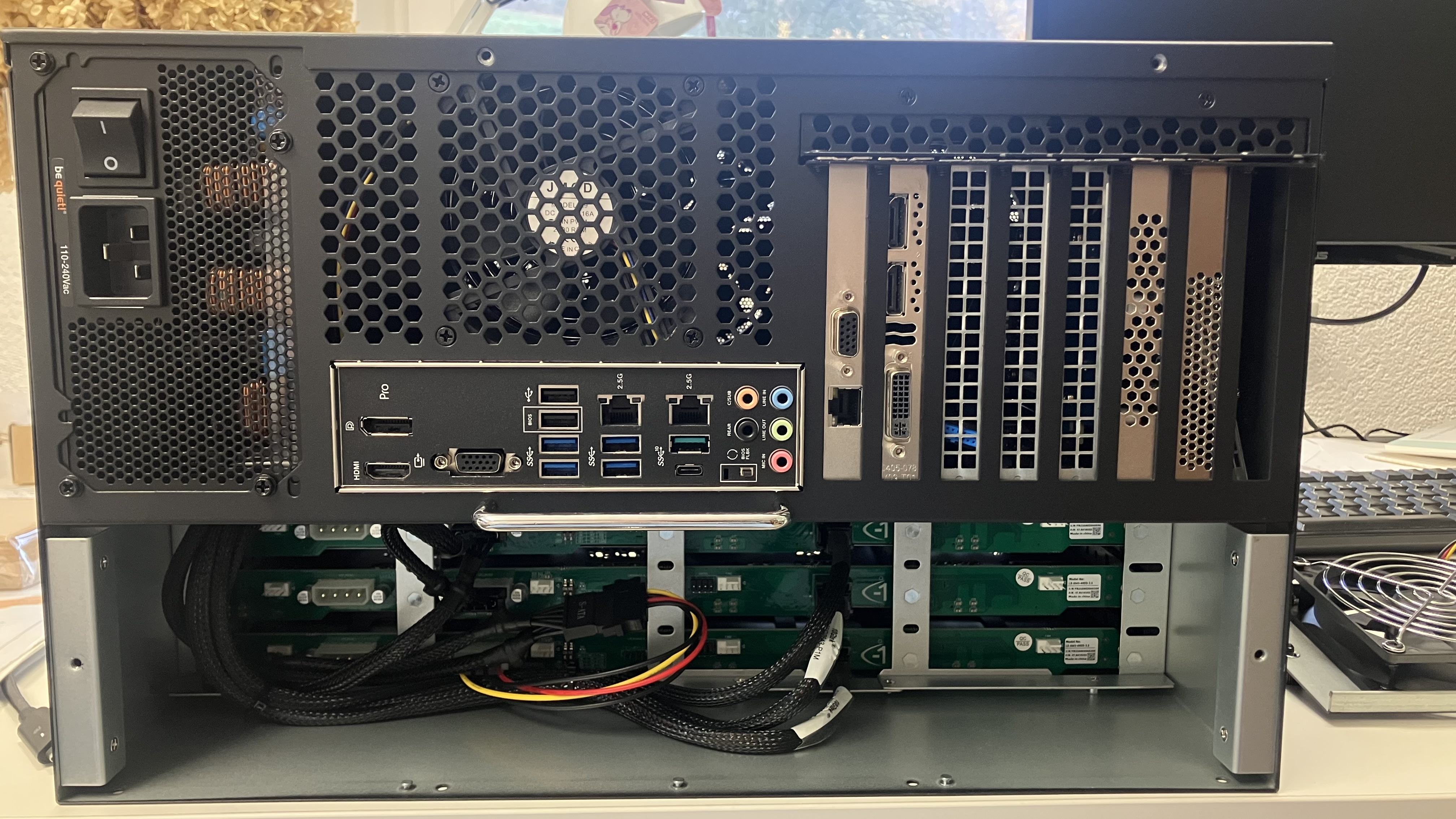 | 5 | PCIe 3.0 x16 (x4 Modus) | OS – Optane (Proxmox + 2× Docker Hosts) | Anbindung: 10Gtek U.2 SFF-8639 auf PCIe Adapter, PCIe 3.0 x4 SSD: Intel Optane DC P4800X 750 GB (U.2) |