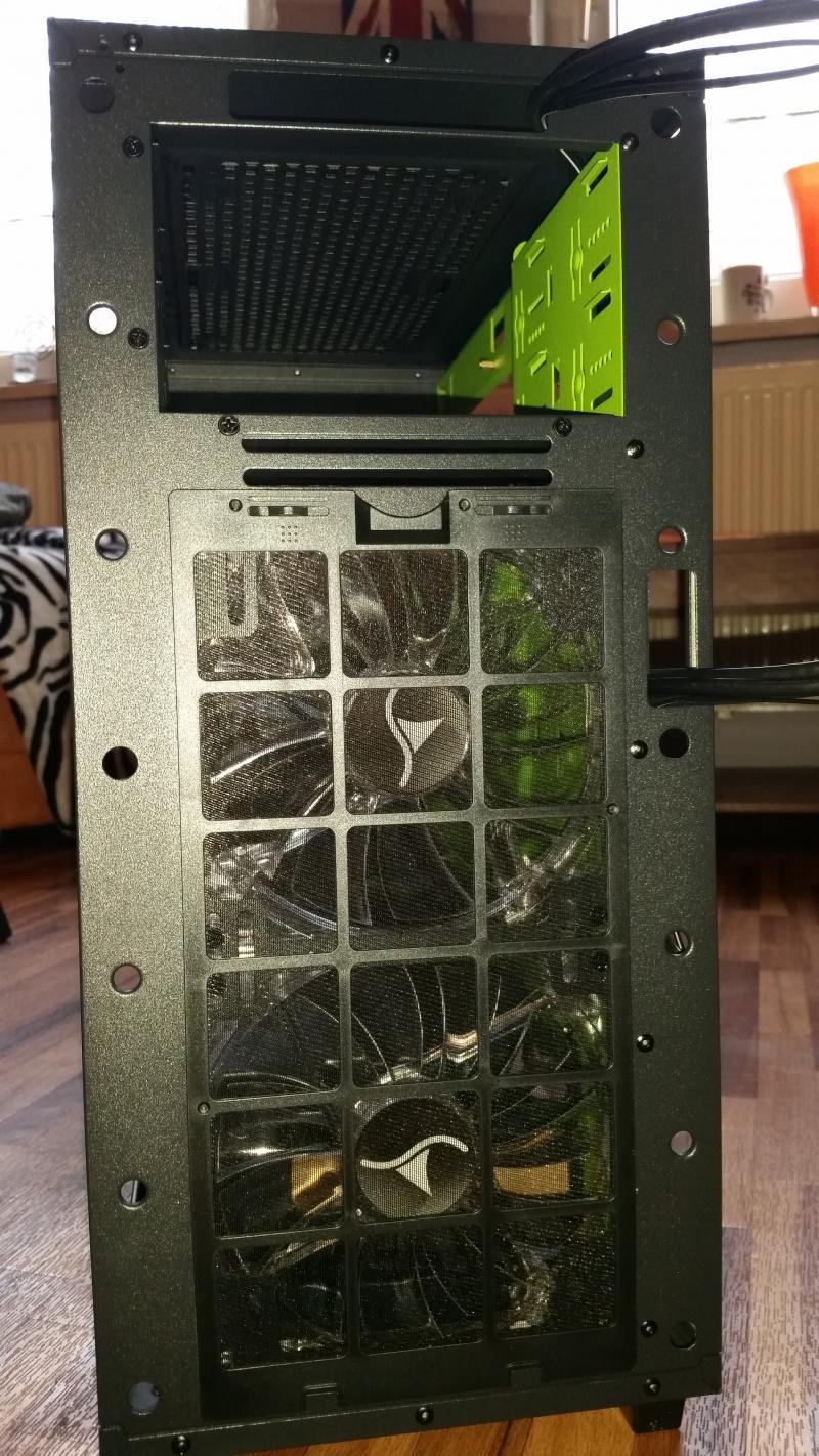 4. Die Lüfteranordnung von meinem Silencio war etwas anders. Beim Sharkoon ist der obere 140mm Lüfter an der Front NUR für die CPU da. Der untere ist für die GPU und die HDD´s.
