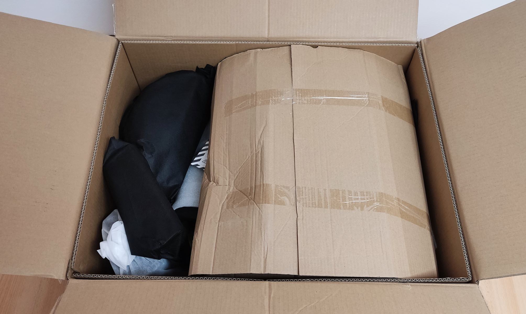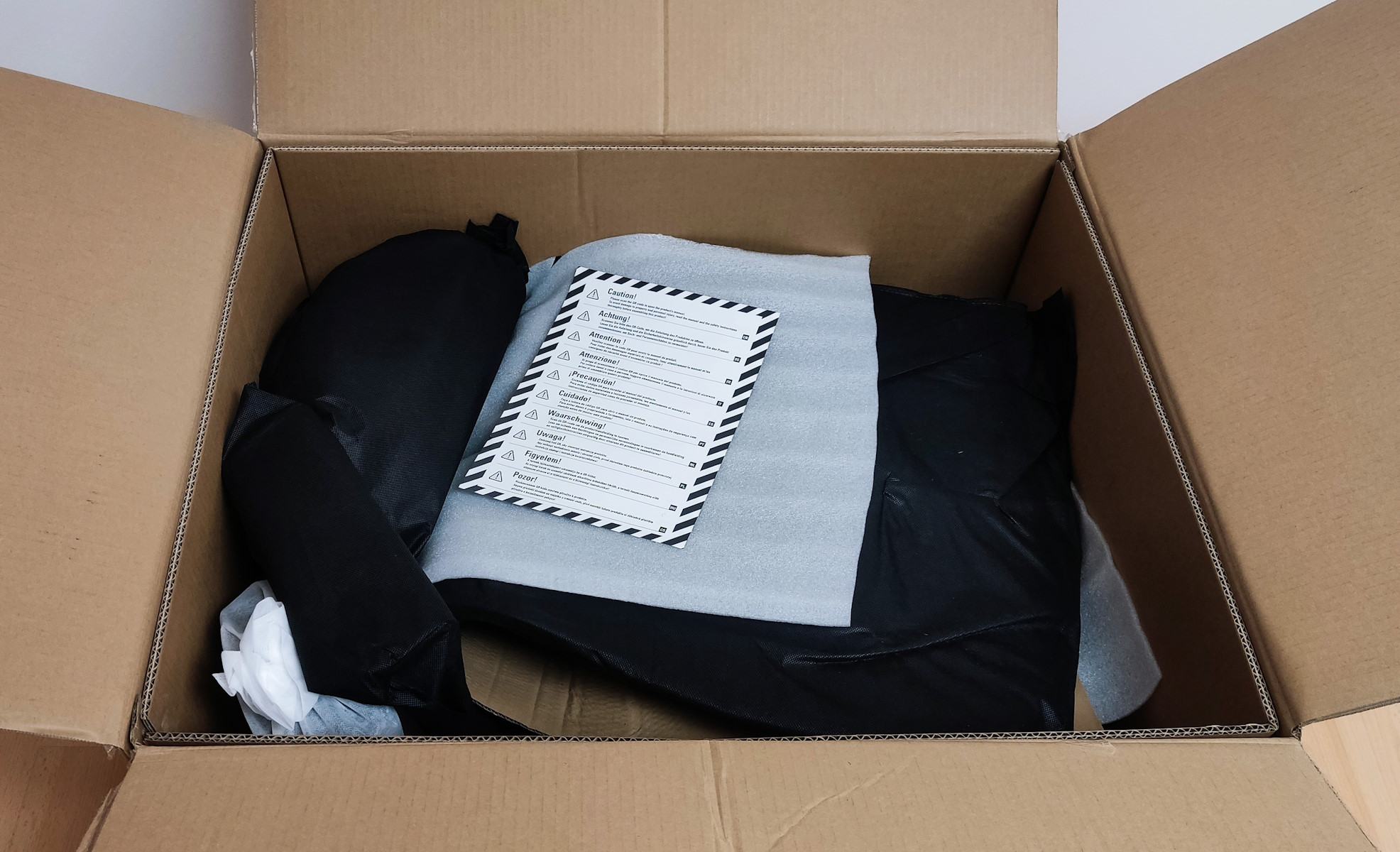 Der Stuhl kommt in einem geschnürten Paket zu euch. Trotz doppelter Wandung hat es wohl an einer Seite das Paket durchschlagen. Beim öffnen fällt die gute Polsterung und Verpackung der Einzelteile auf. Es hat kein Teil Schaden genommen.