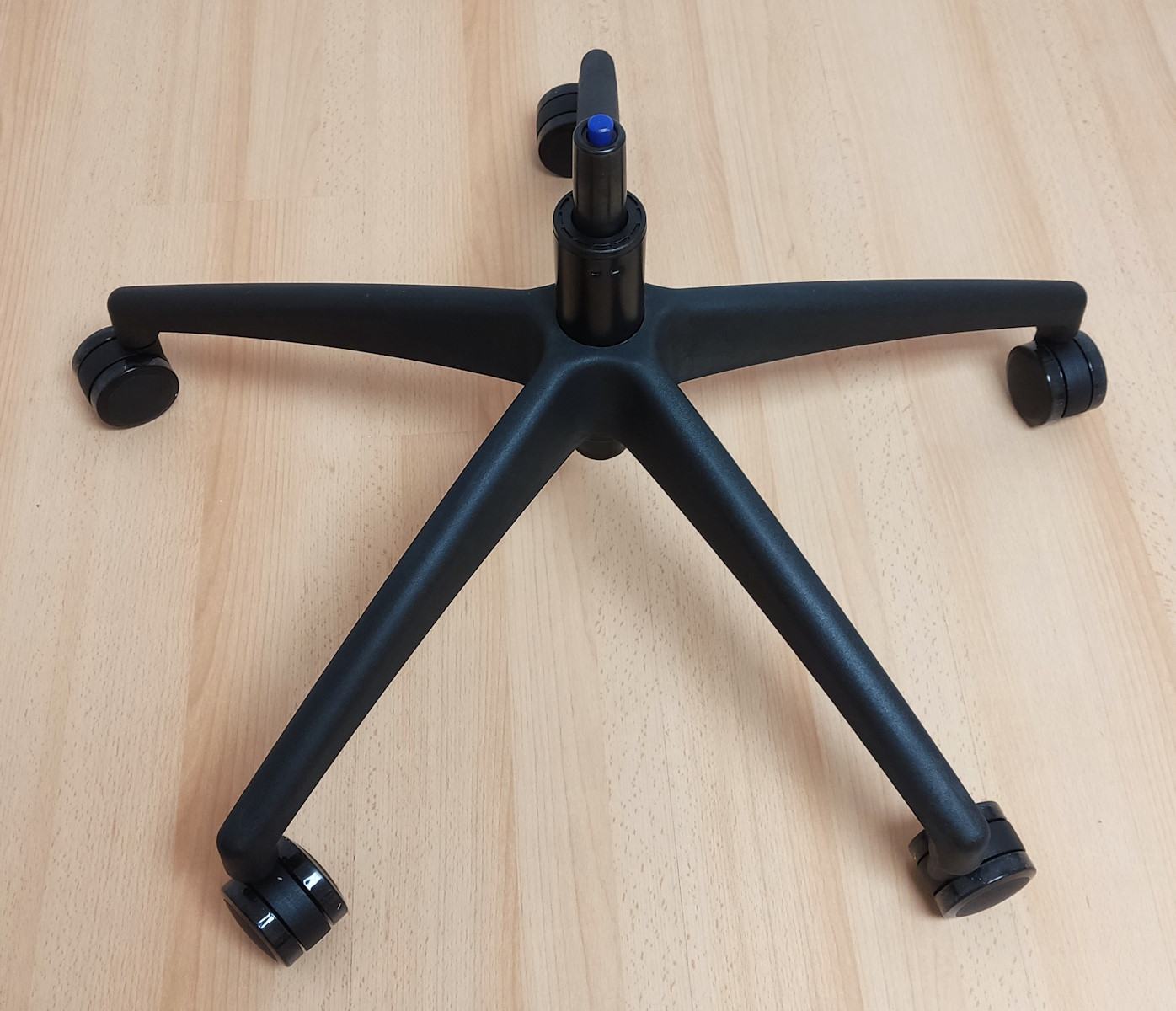 Nachdem das Gestell dann auf das Fußkreuz inkl. Gasdruckfeder aufgesetzt wurde, sieht der Stuhl wie folgt aus: