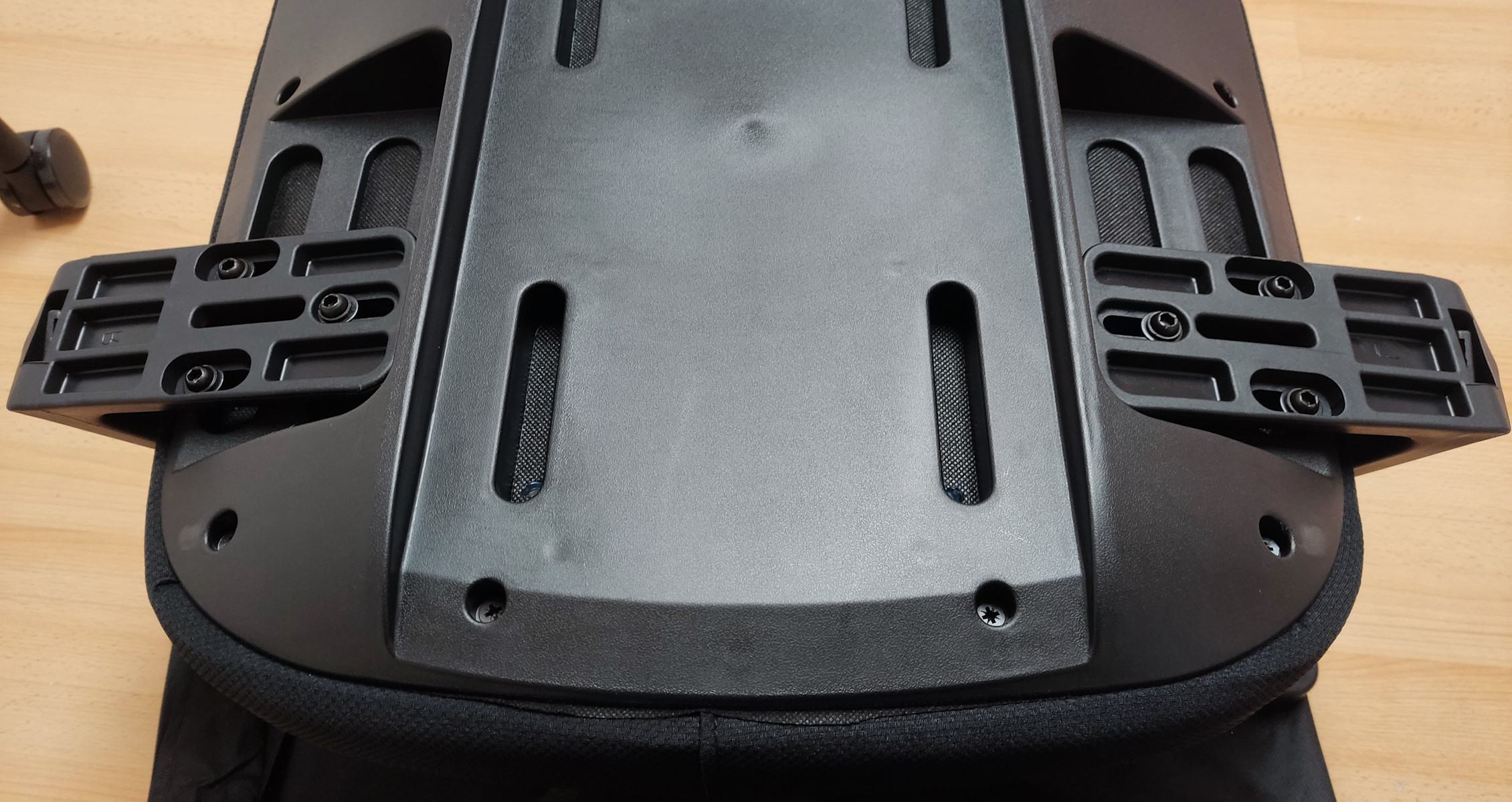Könnte rein theoretisch auch so verwendet werden. Falls, warum auch immer, einem die Kopfstütze nicht zusagen würde. Das sieht Sharkoon nicht selbst vor und packt keine „Nubsis“ um die rückseitigen Gewindeeinsätze zu verblenden mit in den Umfang.