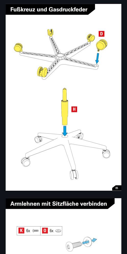 Somit ist der Aufbau beendet und der Stuhl kann nach Belieben konfiguriert werden.