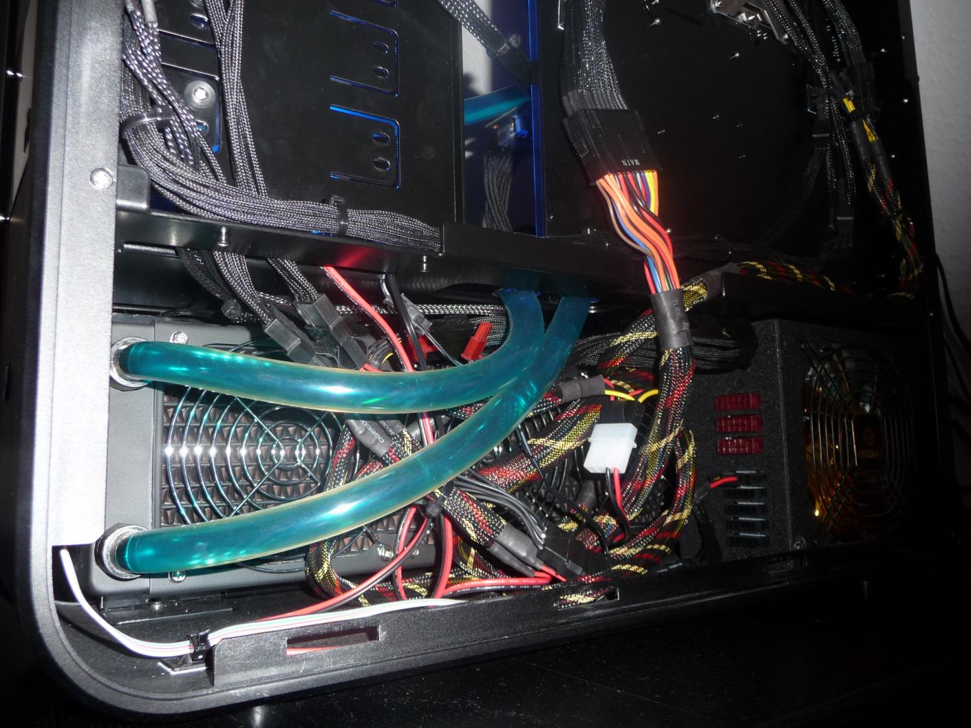 Ich kenne die Mods und Bauten und fand sie schlichtweg nicht gut. 90° Winkel+Schlauch passen problemlos an der Rückseite. Sinn der Sache ist es den Schlauch nicht im Innenraum durch das komplette Case laufen zu lassen, was wir äußerst hässlich finden. Hätte er dort ein Röhren AGB hängen, wäre das etwas völlig anderes gewesen, dem ist aber nicht so, hat schon alles seine Gründe und die Verschlauchung ist sehr gut. Die komplette Planung habe ich vorgenommen, ohne das Gehäuse jemals in der Hand gehabt zu haben, das bekam ich erst letztes WE zu sehen, bis auf 1 Kleinigkeit hat alles wie ich es mir gedacht hatte soweit auch gepasst.