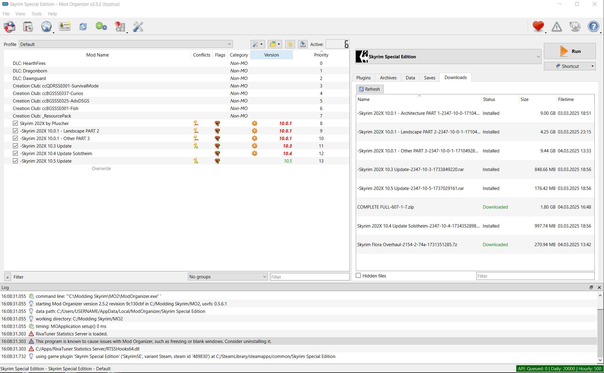 Hab glaube ich jetzt ca. 10 Mods drauf (alles Grafik/Atmo bis auf den No-Weight "Cheat"). leider zerschießt der häufig