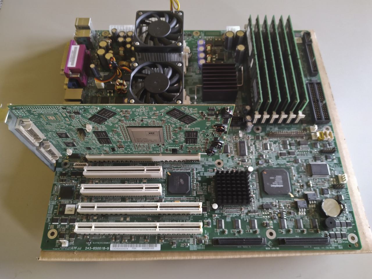 Cauzig das es so früh schon PCI express Karten gab. Meine erste war glaube ich eine Radon 7600 GTX. War dann aber auch schon zu Athlon Zeiten glaube ich. Ich muss grad am WE mal meine Fotoalben wälzen von damals.