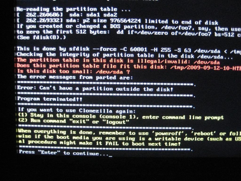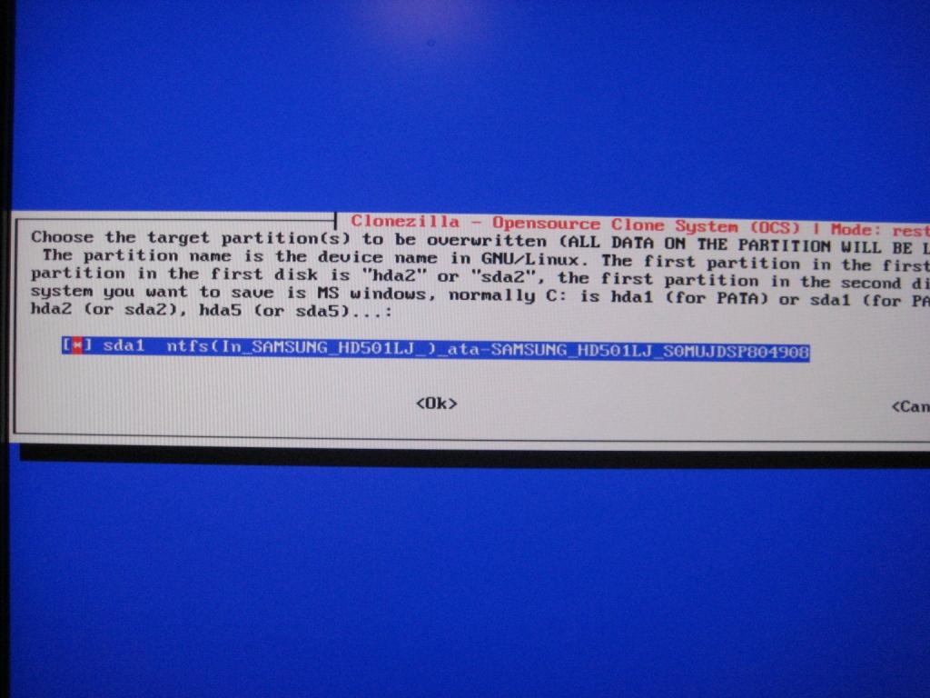 Hab also mittels Clonezilla ein Image von meinem System gemacht, nur wenn ich das ganz dann wiederherstellen will, bekomm ich immer einen Fehler.