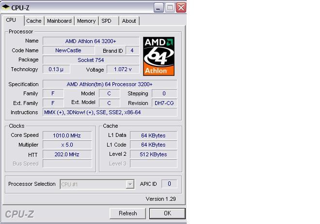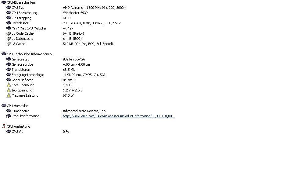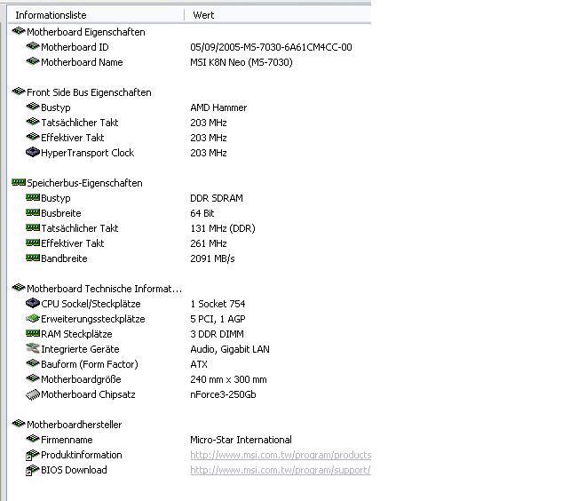 Der PC ist jetzt gut ein Jahr alt. Dort drinne werkelt ein Athlon 64 3200+, jedoch Sockel 754, MB ist das MSI K8N Neo Platinum, Ram steht oben, Grafikkarte eher uninteressant, ist aber eine Win Fast A350 TDH, Chipsatz also eine schon nicht mehr aktuellere 5900XT