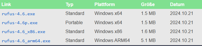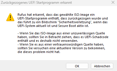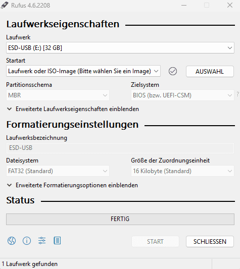 Dann nochmals mit Rufus auf den USB Stick schreiben.
