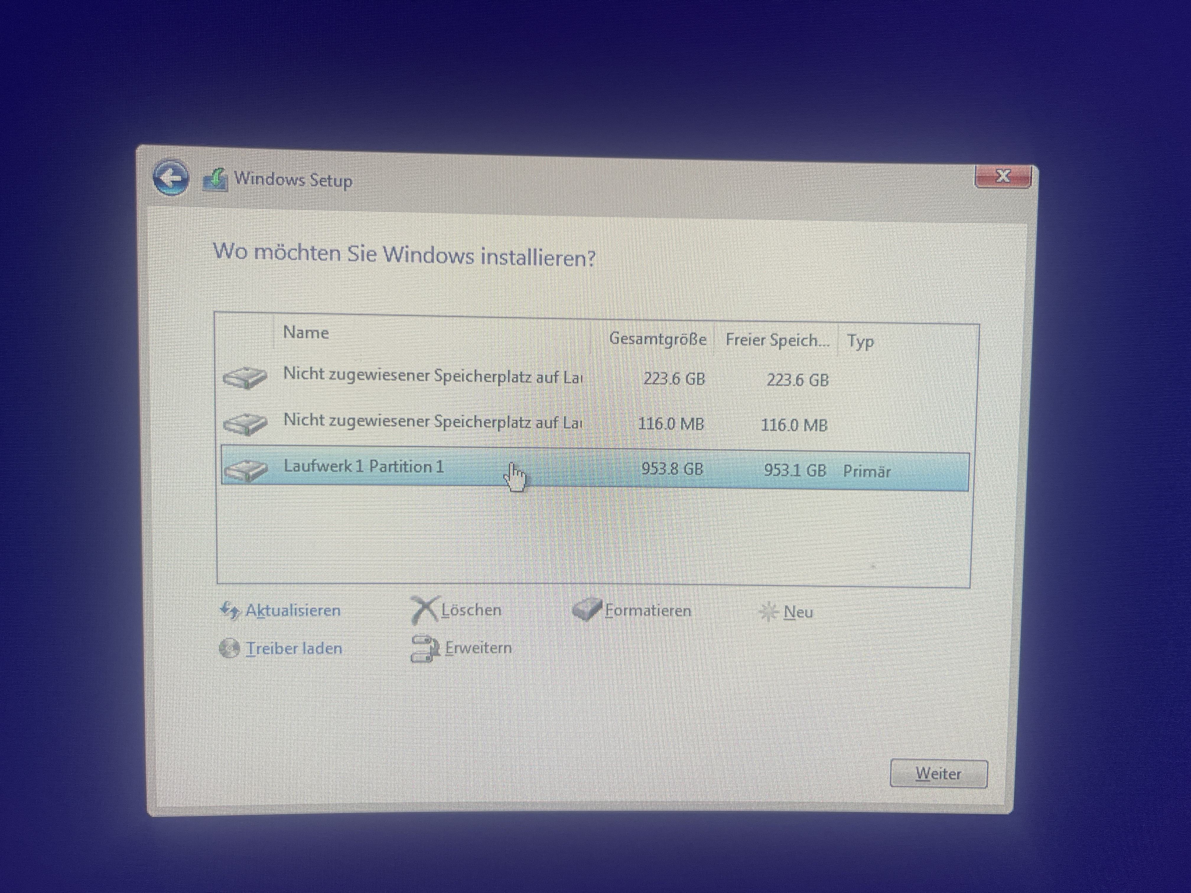 Soll ich jetzt einfach Laufwerk 1 Partion 1 auswählen und weiter?
