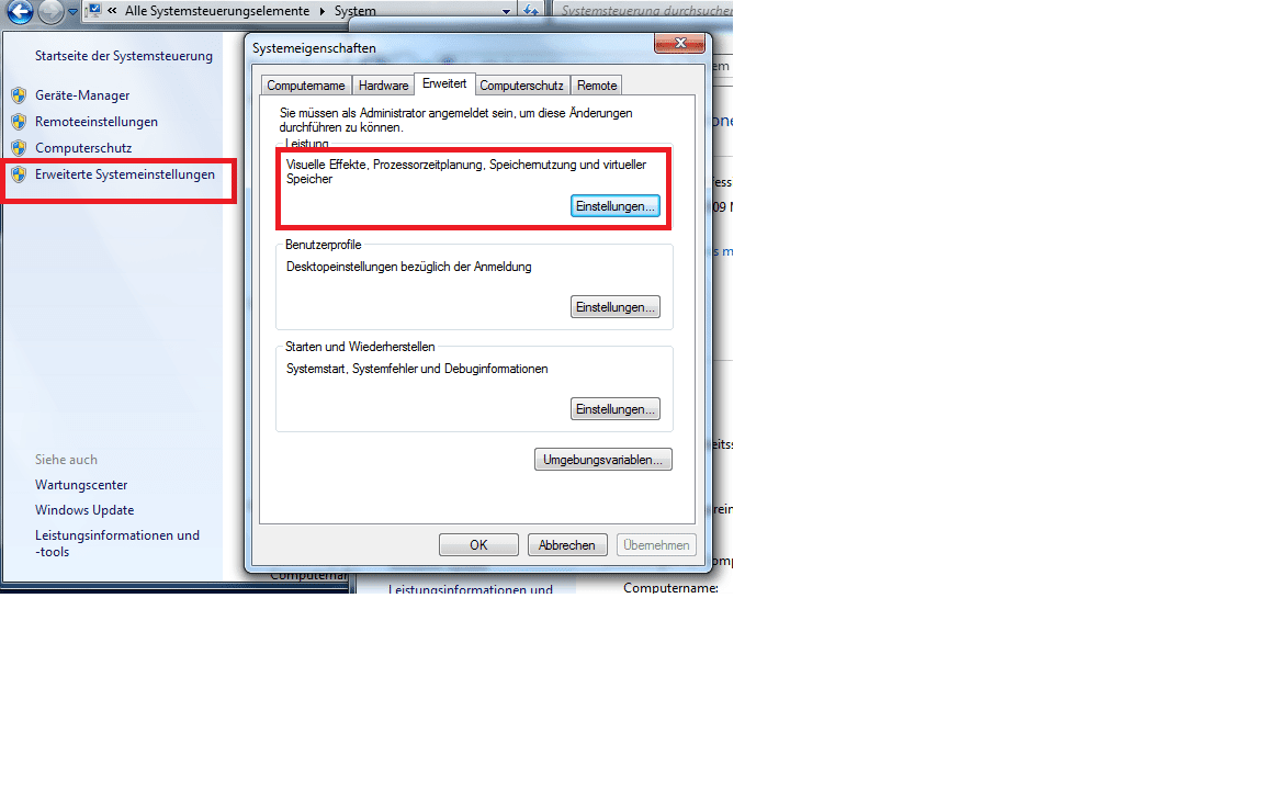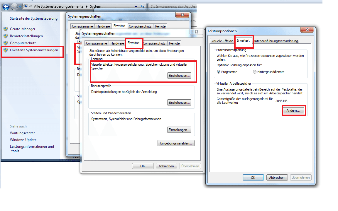 Die Auslagerungsdatei kannst du übrigens konfigurieren unter: "Computer" Rechtsklick--> Eigenschaften --> Erweiterte Systemeinstellungen --> Einstellungen (Leistung) --> Reiter Erweitert --> Ändern
