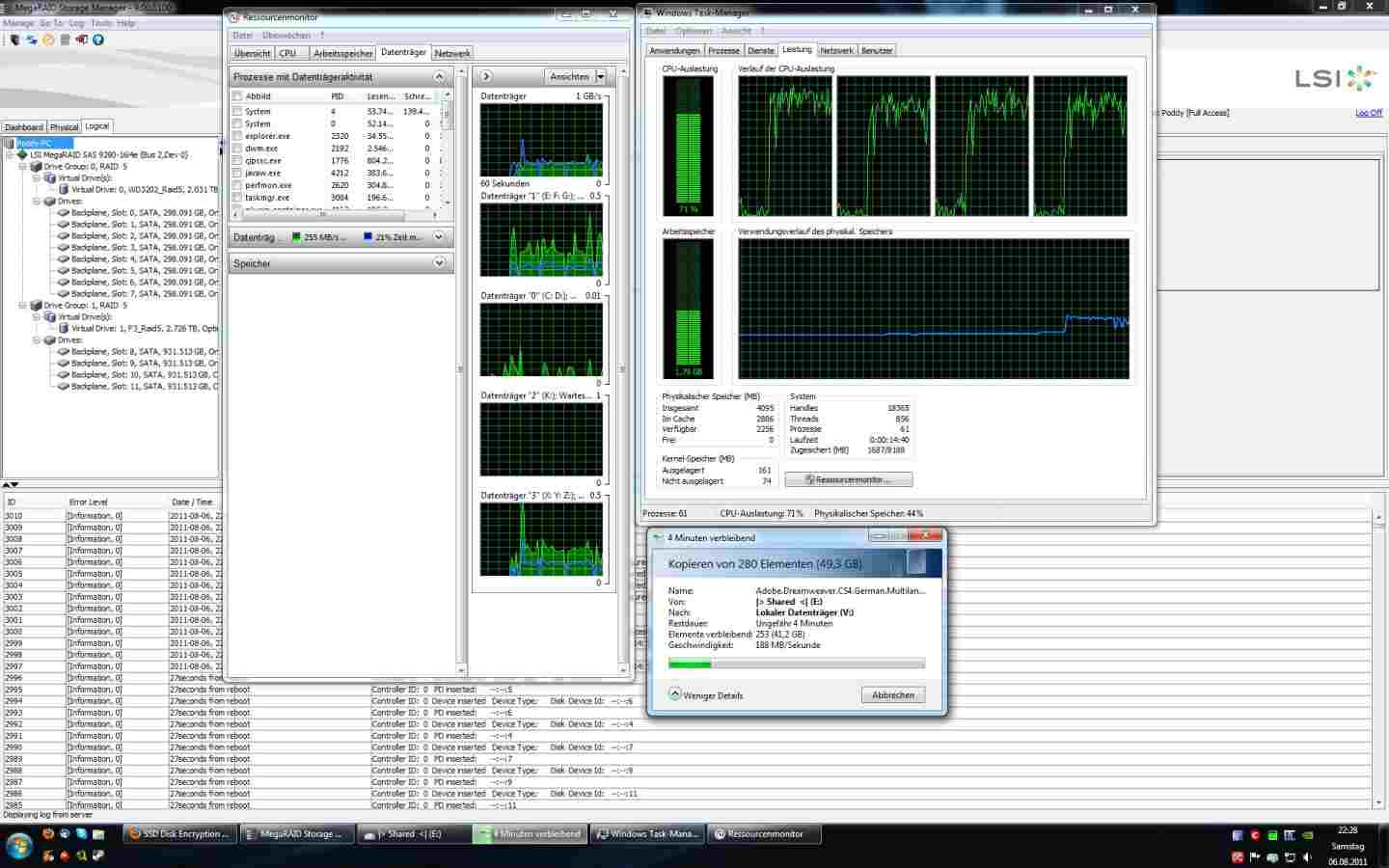 Magst du mal etwas kopieren (>10GB große Datei) und davon einen Screenshot erstellen, auf dem folgendes zu sehen ist: