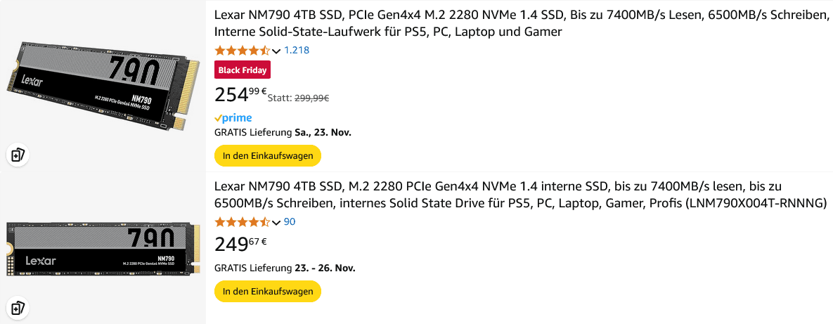 ps: Ich meine noch in Erinnerung zu haben, dass es die SN850X zum "richtigen" BF dann so um die 180€ für 4TB gab. Hatte da aber schon die 2TB für etwas über 100€ gekauft und brauchte daher die 4TB nicht mehr.