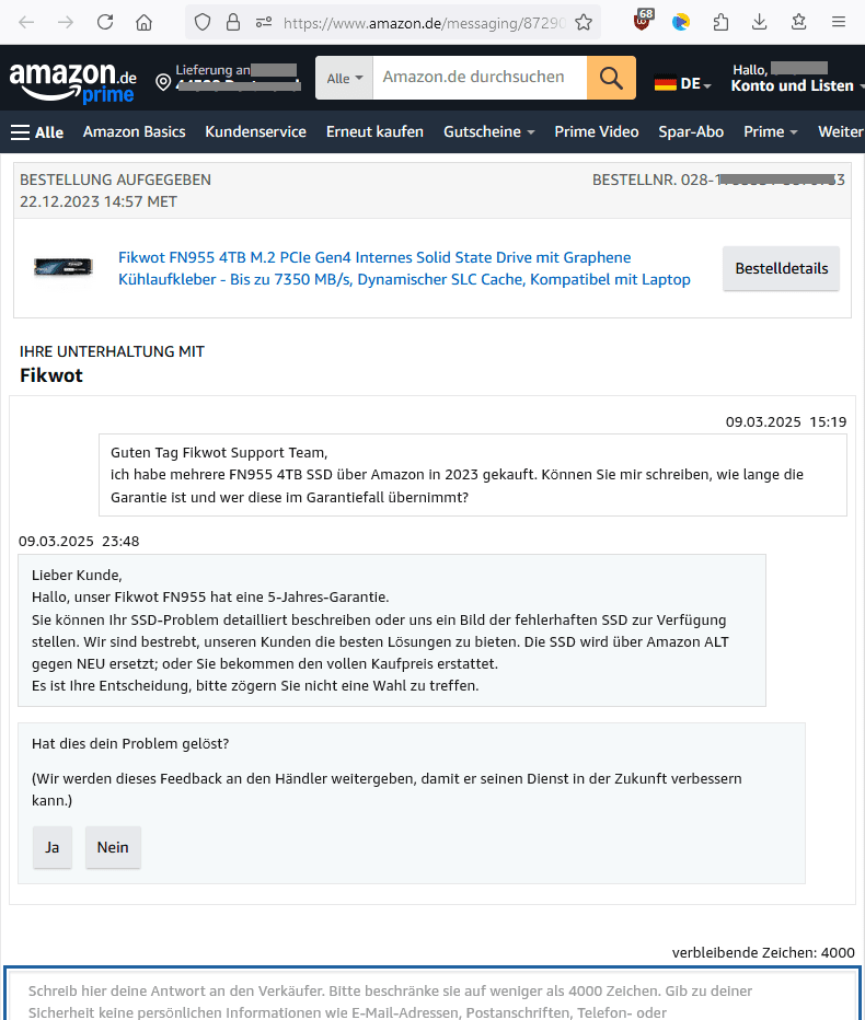 Dann hat dieser User definitiv etwas falsch gemacht. Ich beziehe diese SSDs ausschließlich über Amazon und Ebay und bei beiden WEISS ICH, da schickst du nix irgendwo nach Asien.