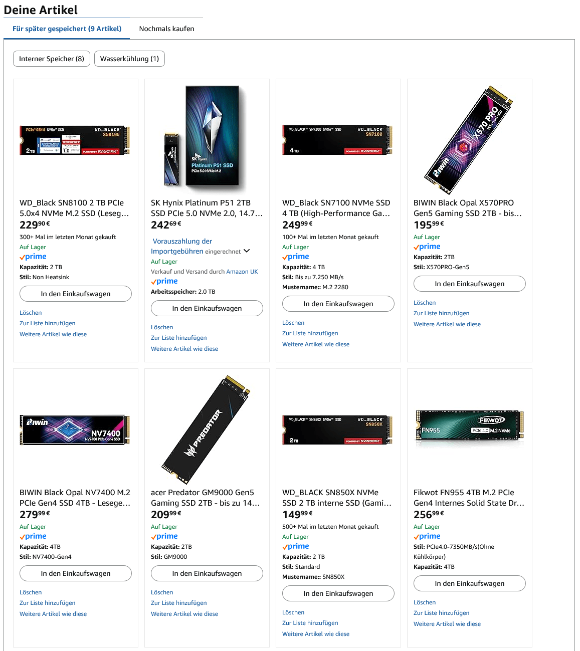 Hab die Links nur für dich eingestellt, ich brauch nix mehr ^^Warte doch noch ein bischen. Ab den 20ten beginnt BW, dann immer mal wieder schauen. Vieleicht gibts ja sogar mal einen SN8100 Schnapper. Ich denke mal, der SD Shop wird da sicherlich auch mit ziehen.![]()