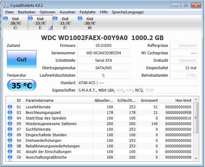 am SATA3_1 steck eine Western Digital Caviar Black 1000GB, SATA 6Gb/s die auf 600mb läuft...