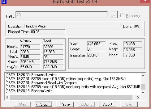 Hier ein Screenshot von BST am Anfang des Schreibvorganges