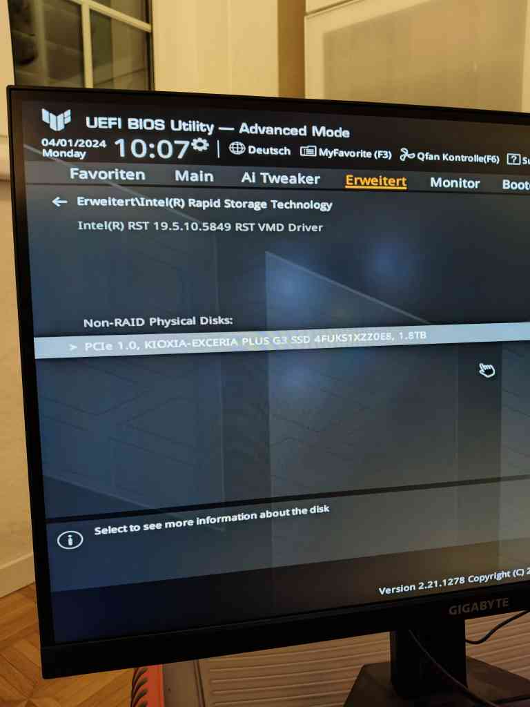 Zurück im Bios, wird mir die m.2 jedoch im Startmenü angezeigt. Unter F7 und unter der spalte NVME Configuration, kann der PC keine m.2 finden.