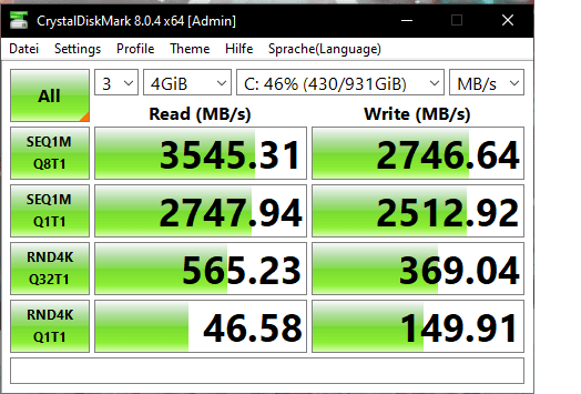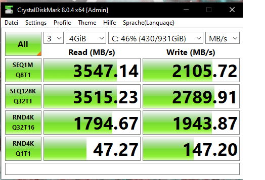 Hier mal meine 970EvoPlus 1TB die auch als Systemplatte genutzt wird. Ist ca. zur hälfte voll.
