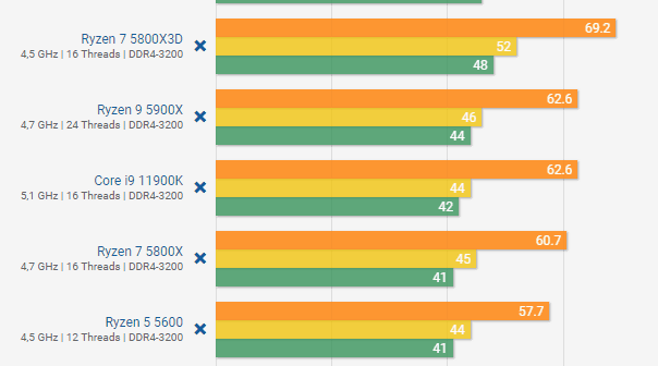 Starfield skaliert mit der RAM Bandbreite, der 3D Cache bringt leider nichts bei dem Spiel. Wenn du den 5800X3D nicht mit DDR4-3200 wie bei PCGH getestet, sondern DDR4-3800 (IF natürlich auch auf 1900 Mhz damit es Synchron läuft) laufen lässt hast du 25% mehr FPS.