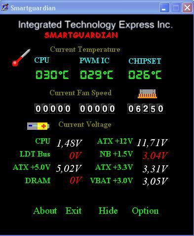 Smartguardian unterstützt nur DFI nF4 Mainboards zu 100%. Bei anderen MBs kann es zu falschen Angaben kommen. Sollte aber bekannt sein