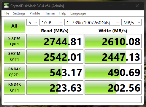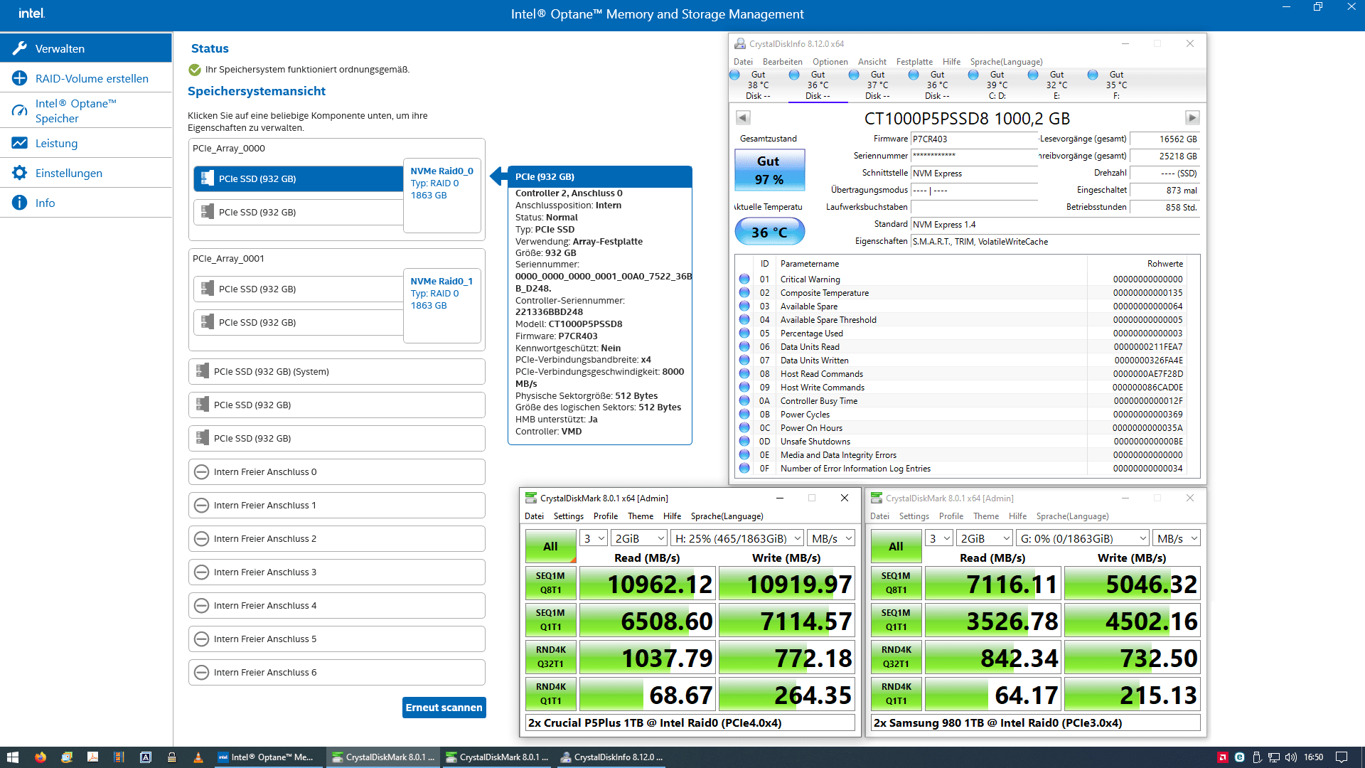 Bin allerdings noch nicht weiter, warum der Q1T1 so "niedrig" ist (sollte eher Richtung 300MB/s gehen).