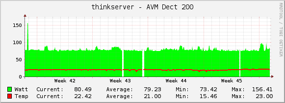 Dell T20: Dell-Board, Xeon E3-1225 v3, 16GB DDR3 ECC, 2x4TB WD green, Intel Pro 1000 NIC, XPEnology: 35W idle, 45W NAS-Betrieb