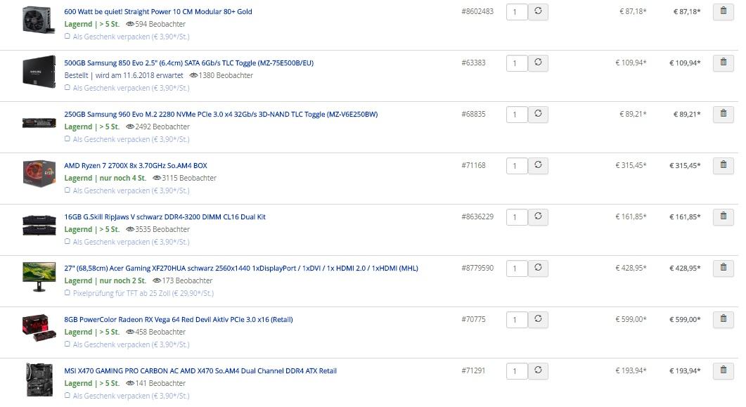 - AMD Ryzen 7 2700x 8x 3,70GHz