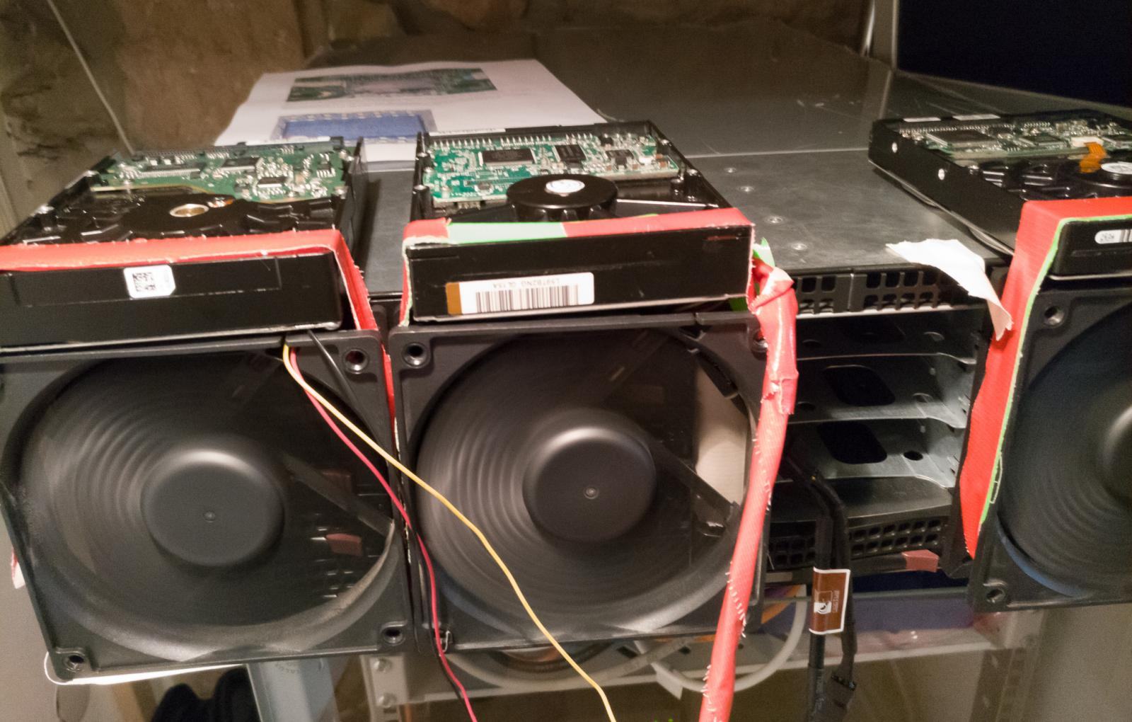 Allerdings ist die Saugkraft der NF-A8 Lüfter an der Backplane bei weitem nicht so riesig wie von den originalen. Entsprechend werden die 5 Festplatten trotzdem warm. Laut System 42-45 Grad (wenn nichts los ist). Ich habe auch schon vorne an die HDD-Einschübe 12cm lüfter angebracht "drangebastelt"), aber die sind nicht sonderlich stark.